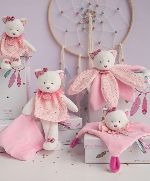 Šī skaistā plīša mīļsedziņa ne tikai sniedz maigumu un mierinājumu, bet arī attīsta bērnu maņas un zinātkāri. Tās dizains apvieno modernas krāsas un maigus materiālus, padarot šo komplektu pievilcīgu gan mazākiem, gan lielākiem bērniem.