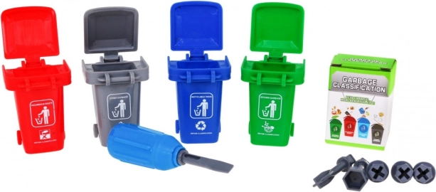 Komplektā ir attēlu kartīšu rokasgrāmata, kas skaidro pareizu šķirošanu: zaļais – virtuves/bio atkritumi, zilais – pārstrādājamie atkritumi, pelēkais – sadzīves (nesašķirotie) atkritumi, sarkanais – bīstamie atkritumi. Tādējādi bērni dabiski apgūst ekoloģiskus ieradumus un atbildību par vidi.
