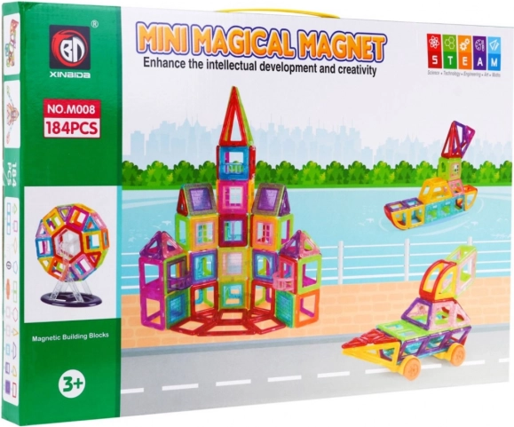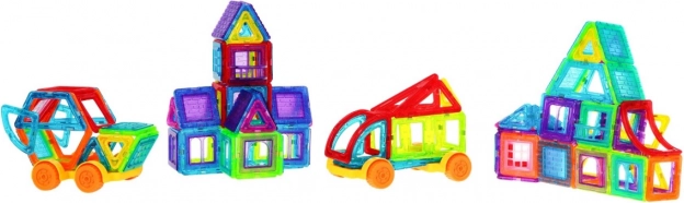 Šis kvalitatīvais magnētiskais būvkomplekts piedāvā plašu formu un speciālo detaļu klāstu ēku, transportlīdzekļu un oriģinālu 3D konstrukciju veidošanai. Bērni rotaļājoties trenē loģisko domāšanu, pacietību un sadarbību. Spēcīgie magnētiskie savienojumi uztur modeļus stabilus, bet caurspīdīgās krāsainās detaļas piešķir katram veidojumam pievilcīgu izskatu.