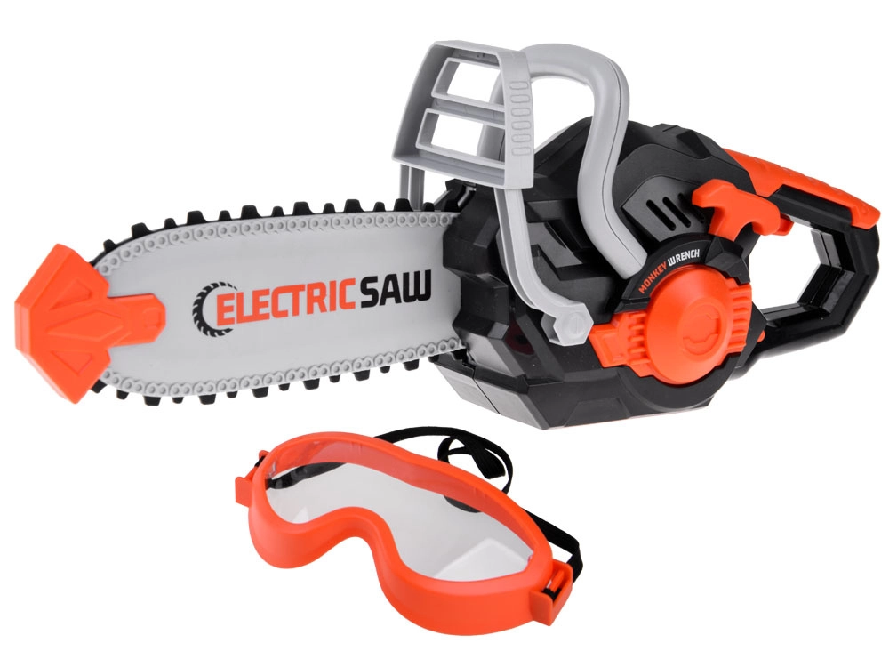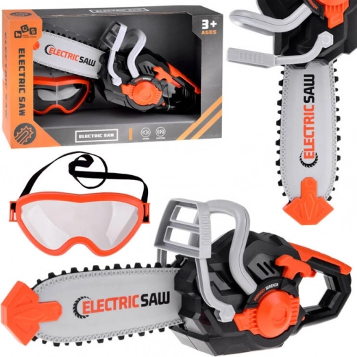 - bērnu elektriskais ķēdes zāģis, aizsargbrilles