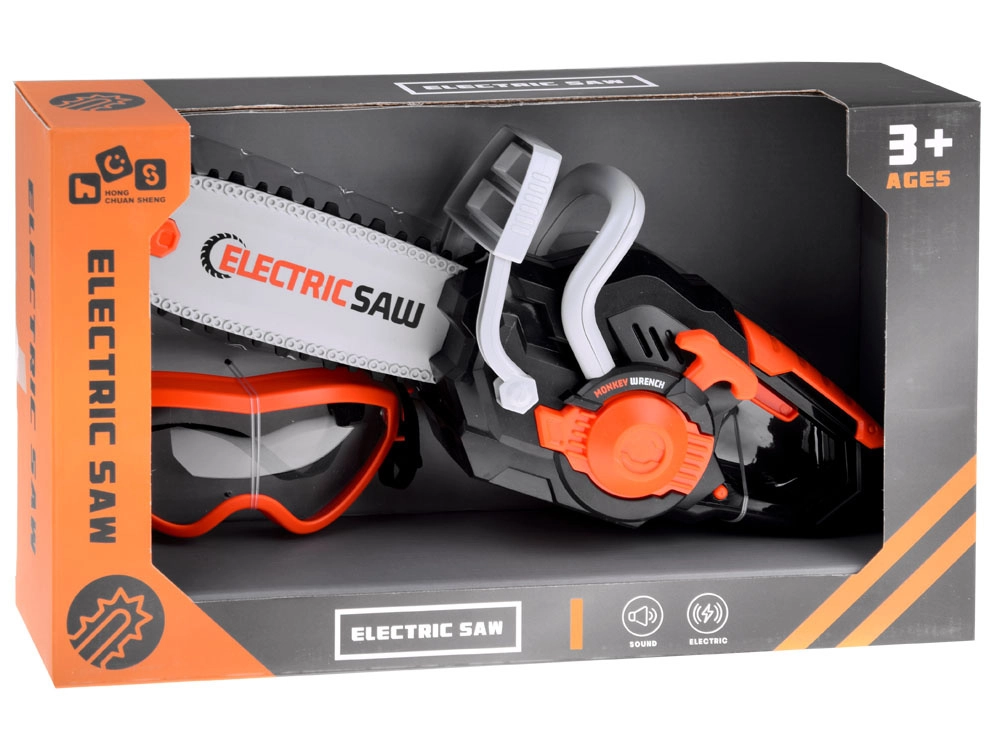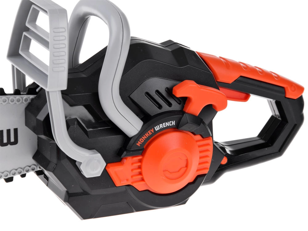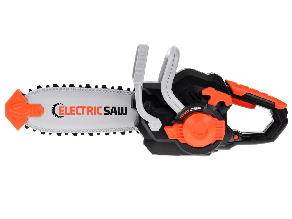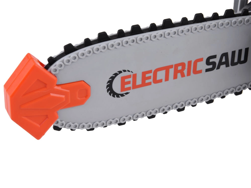 Šis bērnu elektriskais zāģis ir radīts radošai spēlei un drošas rīku lietošanas apguvei. Gumijas, rotējošā ķēde ir mīksta un droša, vienlaikus izskatās reālistiski. Nospiežot pogu, zāģis ieslēdzas un to pavada autentiska skaņa, kas pastiprina spēles pieredzi.