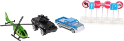 Komplektu papildina liels spēļu paklājiņš ar ceļiem, lai paplašinātu spēļu pasauli, un divas metāla mašīnītes mērogā 1:64. Pateicoties intuitīvai vadībai, rotaļlieta ir piemērota bērniem no 3 gadiem un veicina motoriku, iztēli un satiksmes drošības pamatus.