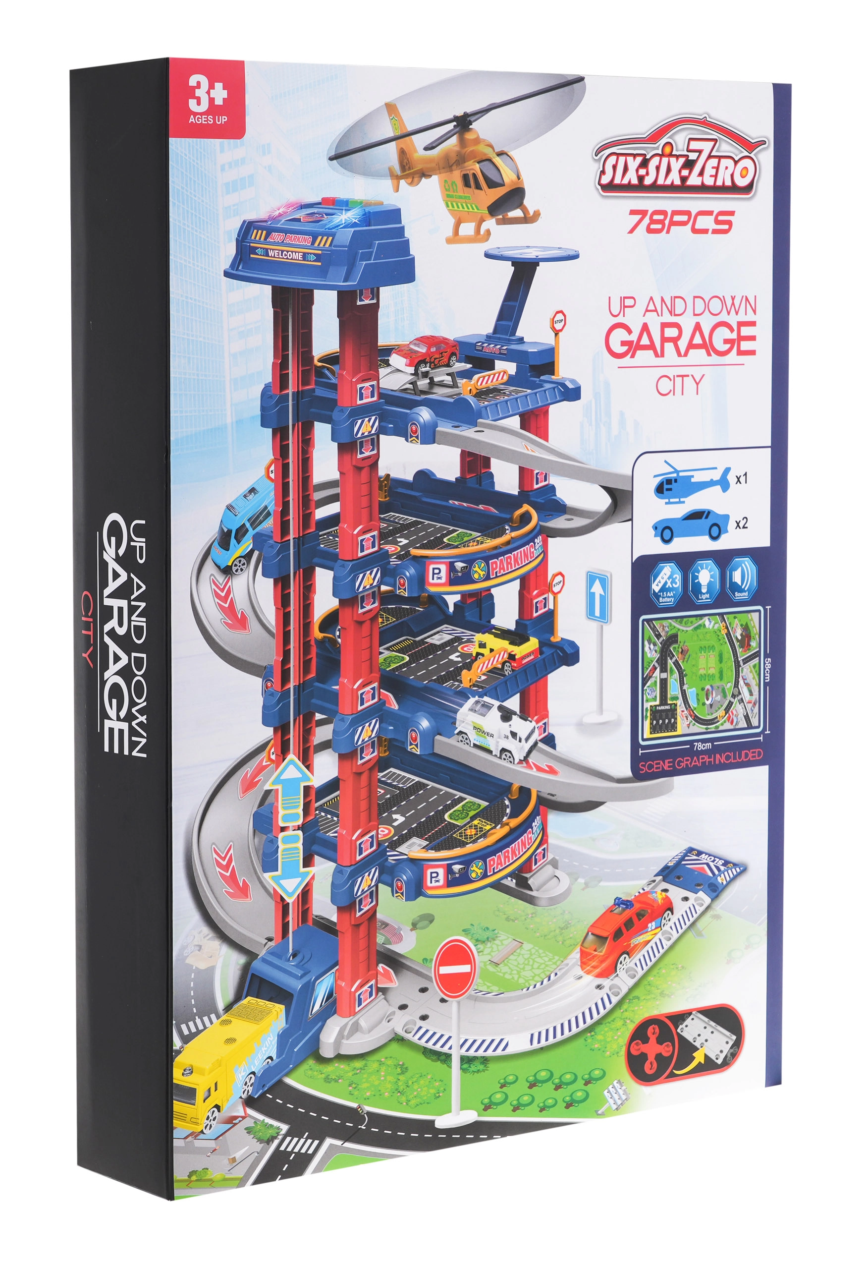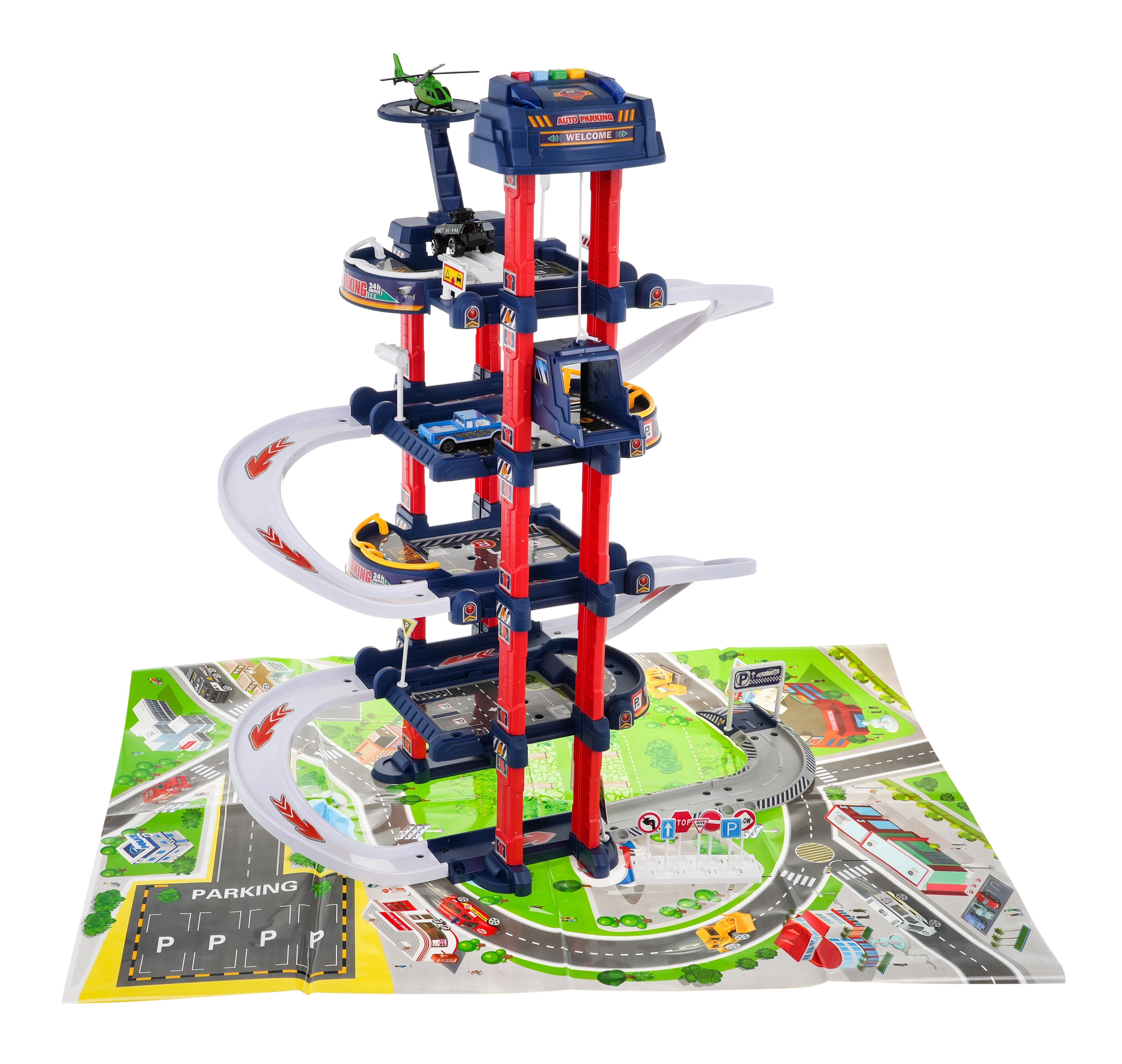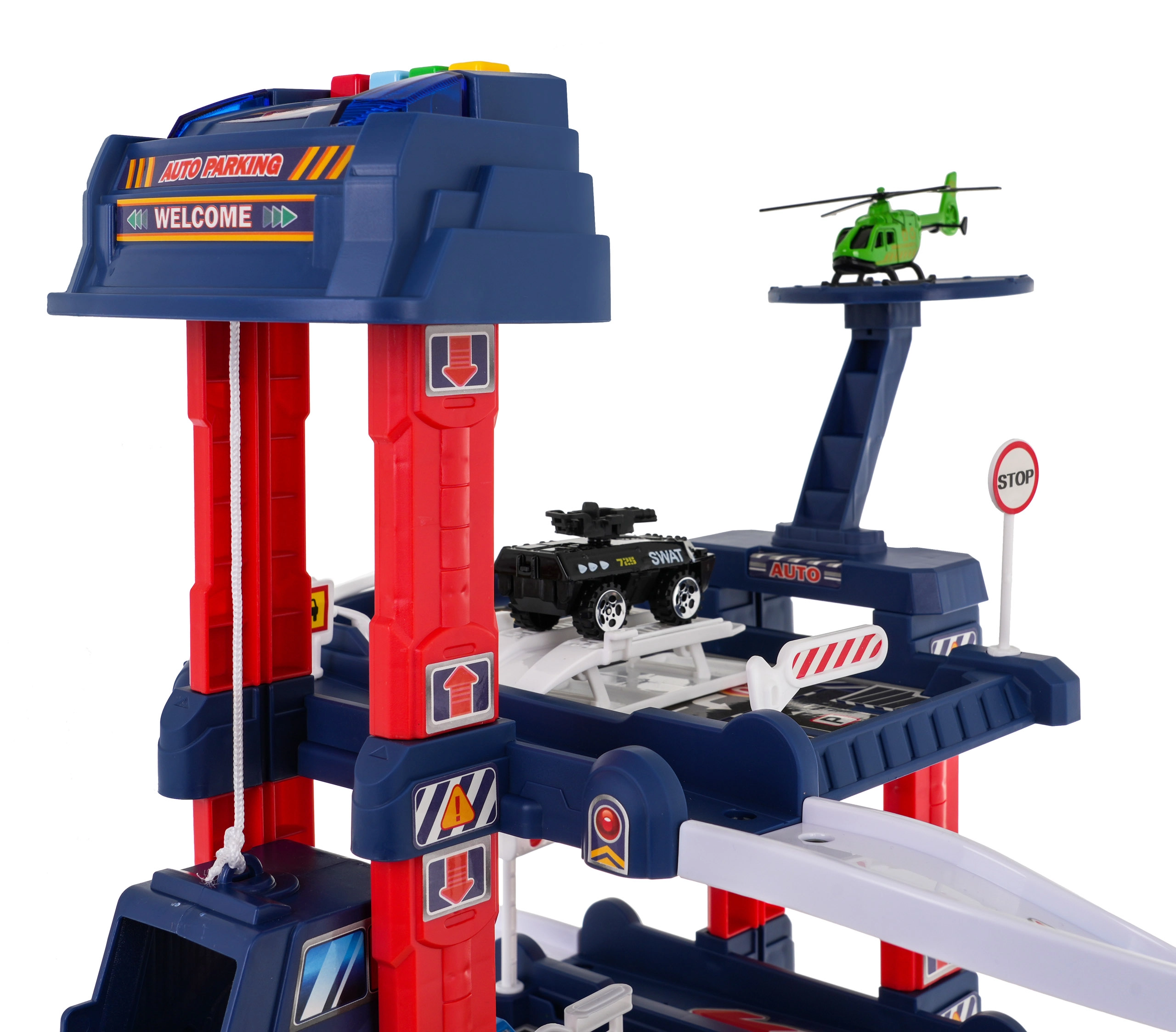 Daudzlīmeņu autostāvvietas ēka piedāvā stāvvietas, degvielas uzpildes staciju, auto pacēlāju un helipadu. Vadības panelis ar krāsainām pogām kontrolē liftu un aktivizē efektus: sarkanā poga nolaiž liftu lejup, dzeltenā paceļ to augšup. Zilā poga atskaņo policijas, ugunsdzēsēju, ātrās palīdzības, iedarbināšanas un šaušanas skaņas, zaļā poga aktivizē skaņas signālu. Uz paneļa mirgo zilās un sarkanās gaismas, kas pastiprina spēles atmosfēru.