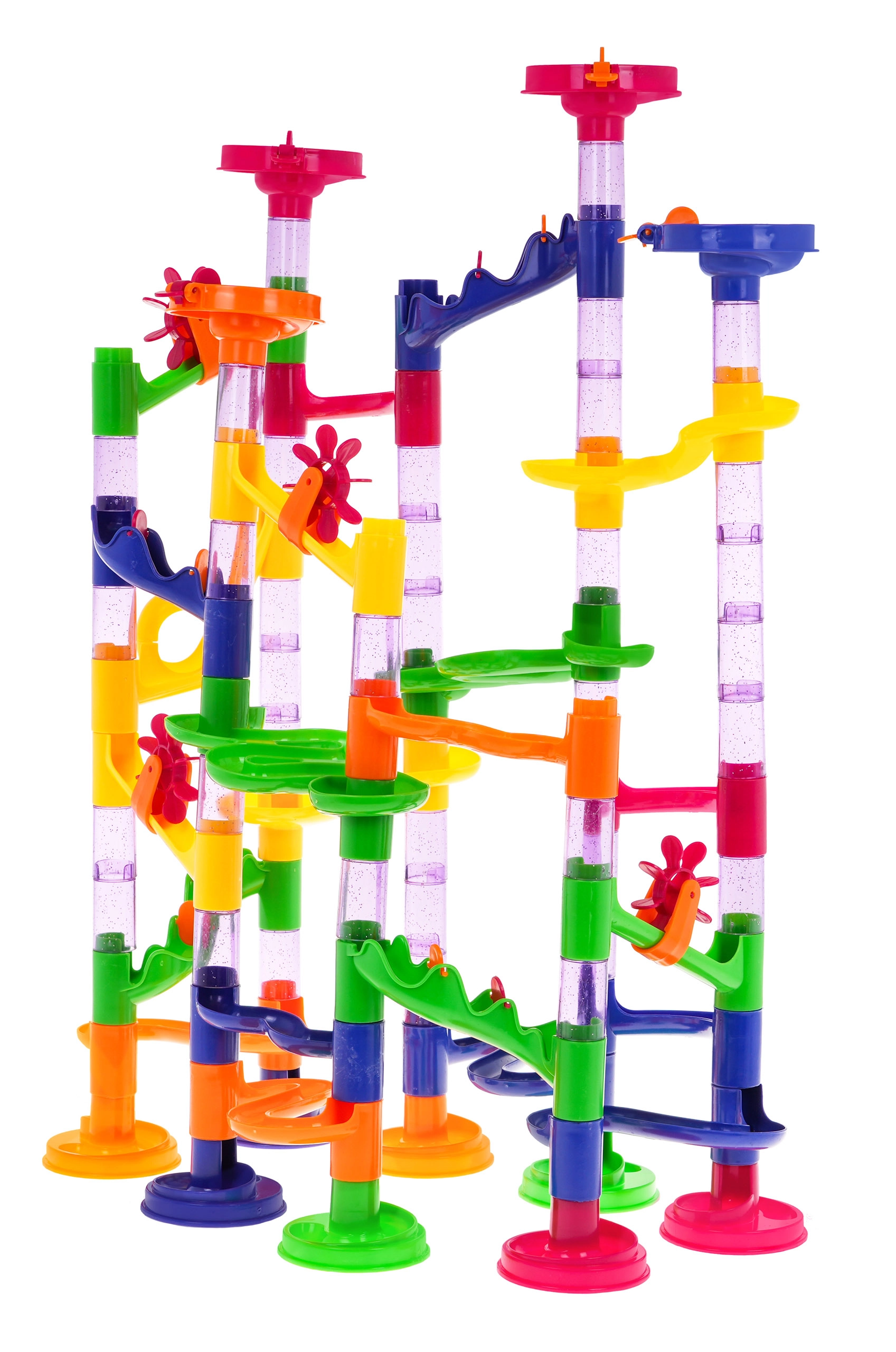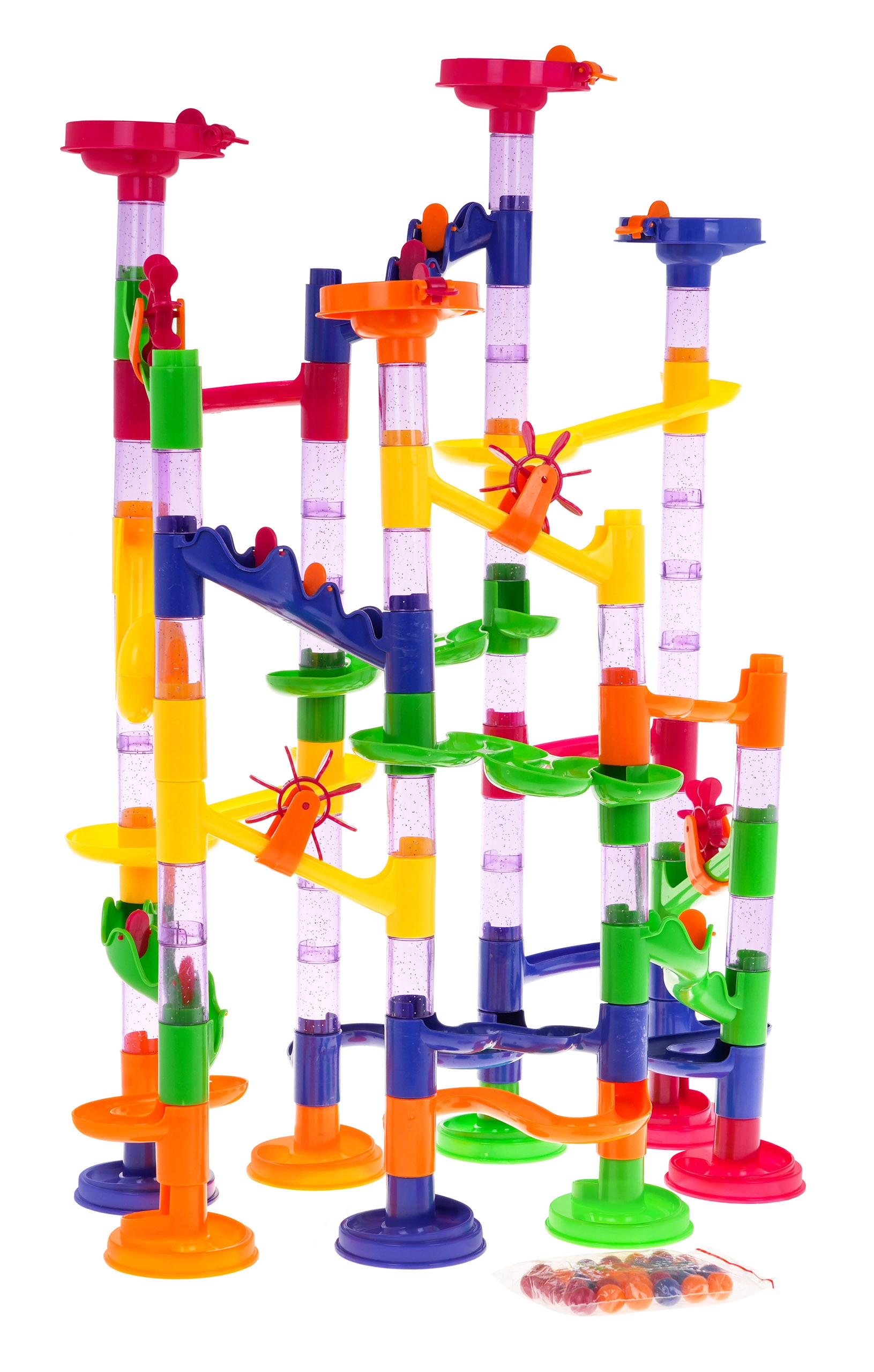 Krāsaina un izturīga bumbiņu trase bērniem no 3 gadu vecuma, kas attīsta radošumu un roku prasmes. Ideāli piemērota individuālai būvēšanai un bumbiņu kustības vērošanai.