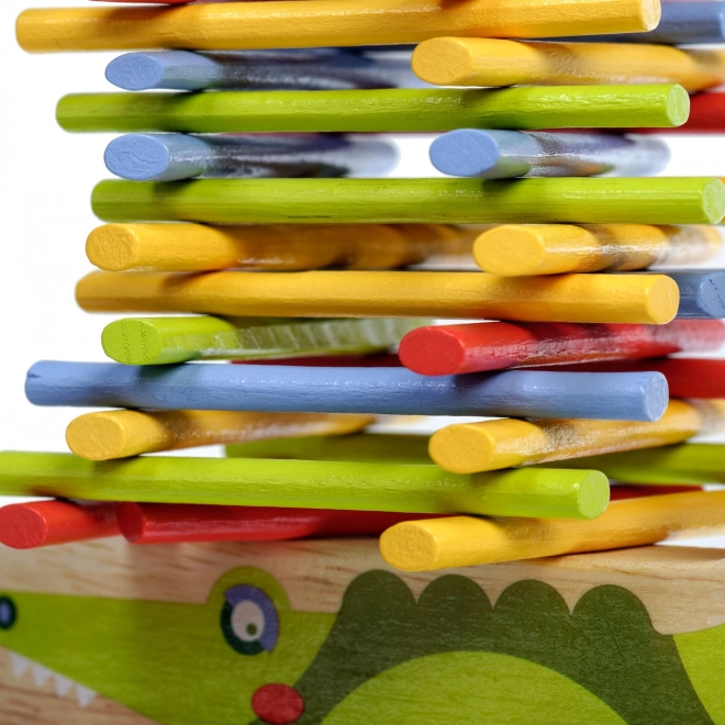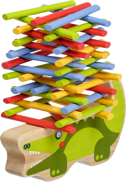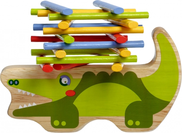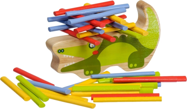 Koka līdzsvara spēle Krokodils ir jautra un radoša spēle bērniem, kas veicina sīko motoriku un pacietību. Ar krāsainām kociņām un krokodilu kā pamatu tā sniedz stundām ilgu kvalitatīvu izklaidi.