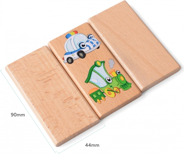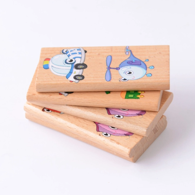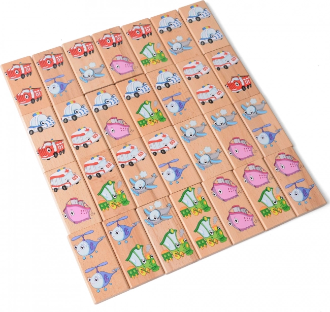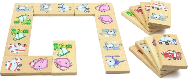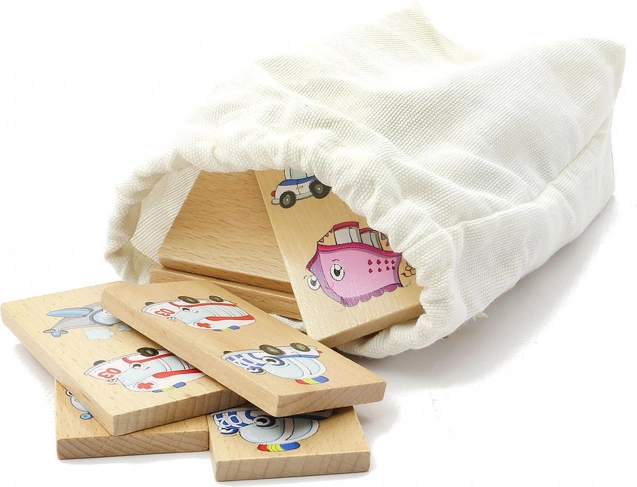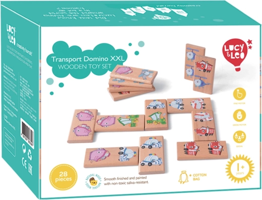 Koka domino XXL ir lieliska rotaļlieta bērniem, kuri labprāt mācās un atklāj jaunas lietas. Katrs no 28 kauliņiem satur ilustrācijas, kas palīdz bērniem atpazīt dažādus transportlīdzekļus, piemēram, ugunsdzēsēju auto, ātro palīdzību un citus.
