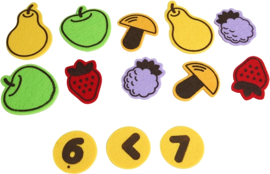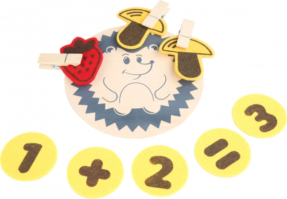 Ar šo komplektu bērni var droši un radoši darboties ar koka un tekstila elementiem. Rotaļlieta ir izstrādāta, lai iepazīstinātu bērnus ar pamatmatemātiskajām darbībām un skaitļiem, veidojot pamatu turpmākajai izglītībai. Katrs sīkums ir rūpīgi pārdomāts, lai veicinātu izturību un koncentrēšanos.