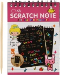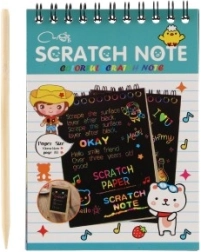 Bērni var bezgalīgi izklaidēties, veidojot krāsainus rakstus, pateicoties iekļautajai skrāpējamai pildspalvai.