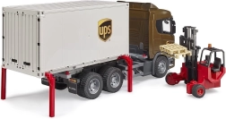 BRUDER SCANIA R sērijas modelis izceļas ar komforta un izturības apvienojumu. Dinamiskā dizaina kabīnei ir atveramas durvis, nolokāmi ārējie spoguļi un tā ir gatava papildināšanai ar gaismas un skaņas moduli. Konteineru uzbūve ir pilnībā maināma – pateicoties atbalsta kājām to var viegli atvienot un pacelt, lai vilcējs varētu izbraukt.