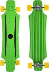 Deks no īpaši izturīga polipropilēna ir viegls un stingrs, pretslīdes tekstūra un grip lentes sniedz drošību braukšanas laikā. Alumīnija 7" treki, lielie PU riteņi 70 × 51 mm un ABEC 7 gultņi nodrošina plūdenu ripējumu, labu nelīdzenumu slāpēšanu un precīzu pagriešanos.