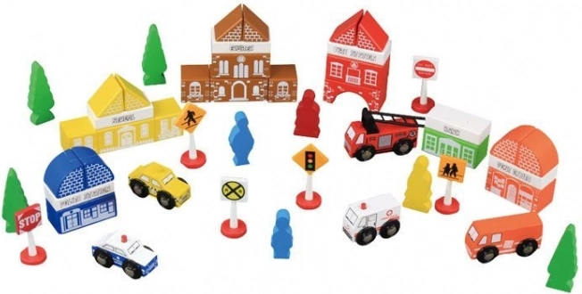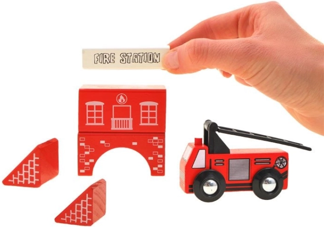 Koka celtniecības komplekts Pilsētiņa Ugunsdzēsēju stacija ir rūpīgi izgatavots ar uzsvaru uz detaļām. Krāsainie elementi piesaista uzmanību un iedrošina spēlēt. Šie koka klucīši ir izturīgi un kalpos ilgi. Izgatavoti no dabīgiem materiāliem, tie ir pilnībā ekoloģiski.