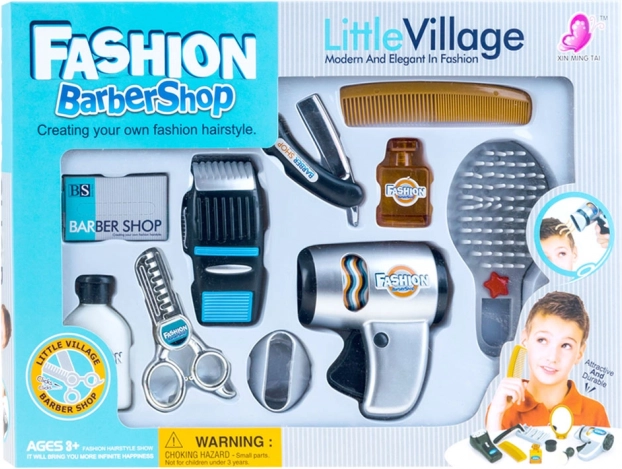 Komplektā iekļauti visi nepieciešamie instrumenti spēlei frizētavā – no griešanas šķērēm līdz šampūna un odekolona pudelītēm.
