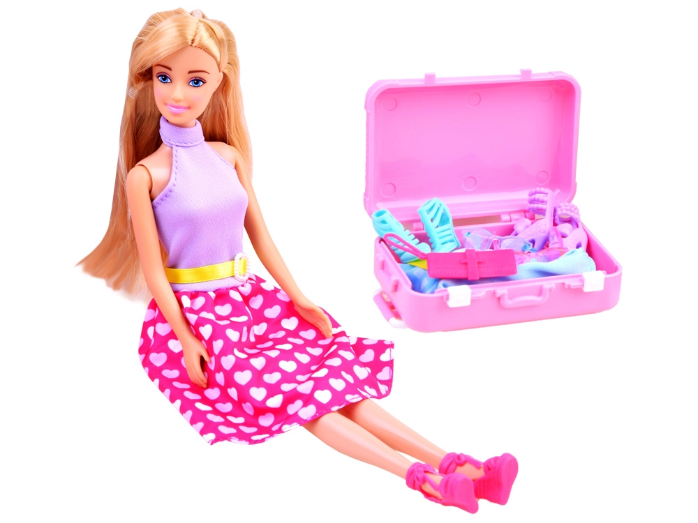 Iepakojumā iekļauti dažādi tērpi — no kleitas ar “Girl Power” apdruku līdz elegantām ballīšu drānām, vairāki pāri kurpju, somiņas, ķemme, spogulītis un citi stilīgi aksesuāri. Pārnēsājamais dizains ar rokturi ļauj paņemt savu modes pasauli līdzi jebkur.