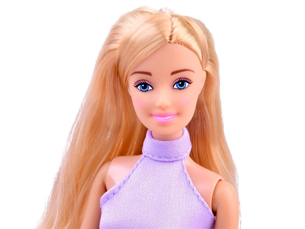 Lelle ar gariem blondiem matiem un moderniem tērpiem iedvesmo lomspēlēm un modes stāstiem. Viegli pārģērbjama un kombinējama ar aksesuāriem.