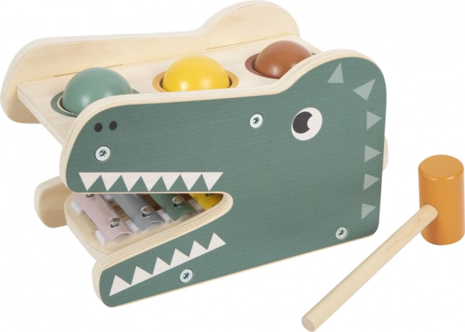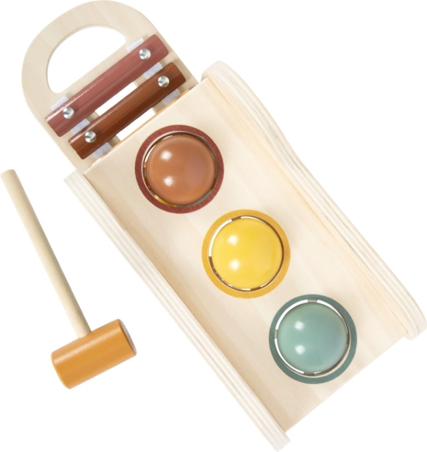 Šī koka rotaļlieta apvieno multifunkcionālu spēli ar skaistu dizainu. Bērni ar āmuriņu iesit trīs krāsainas bumbiņas caur atveri, un, tām ripojot, atskan integrētā ksilofona toņi. Muzikālo daļu var viegli izņemt un izmantot atsevišķi – ideāli pirmajiem muzikālajiem soļiem.