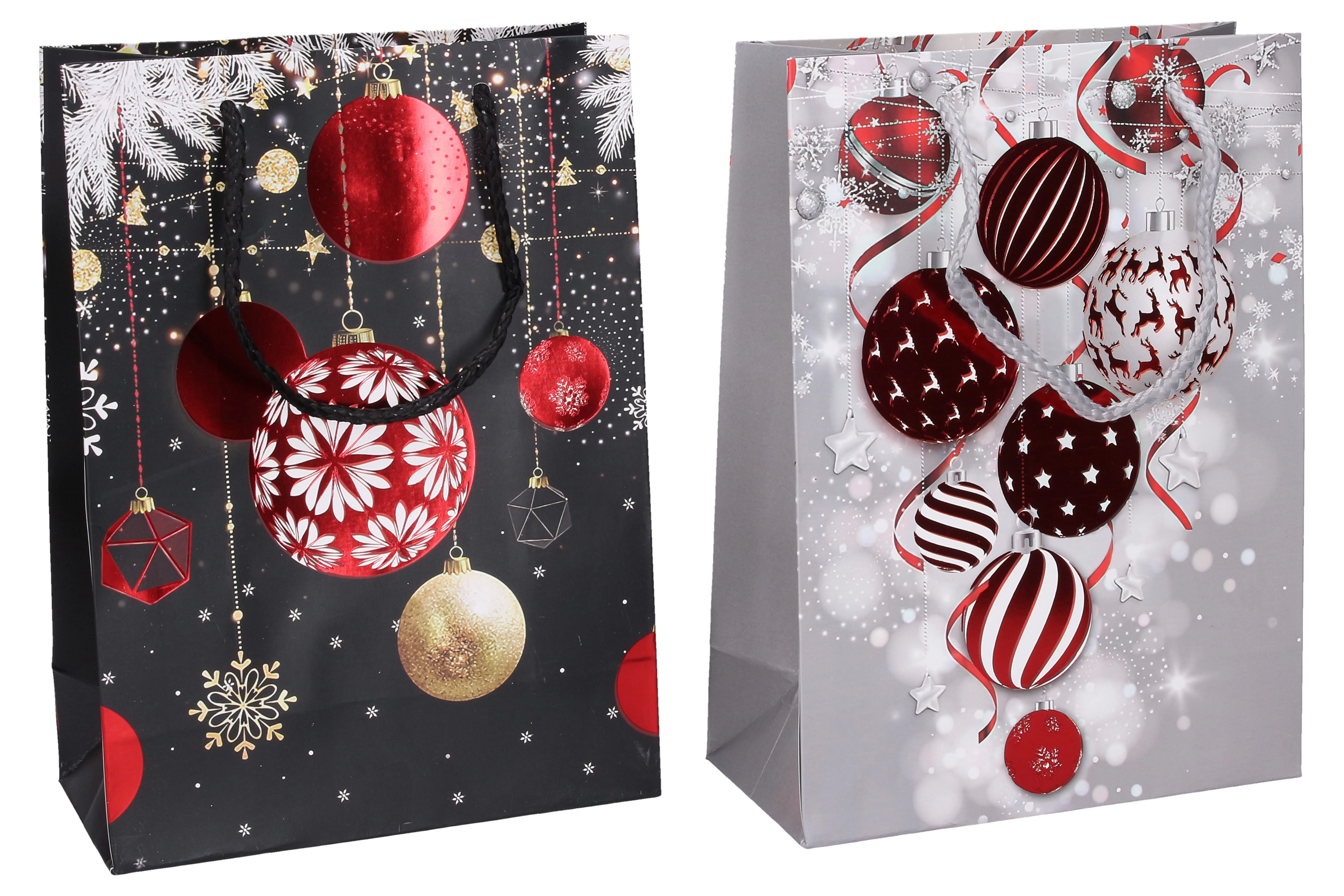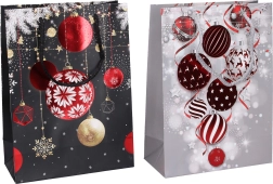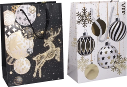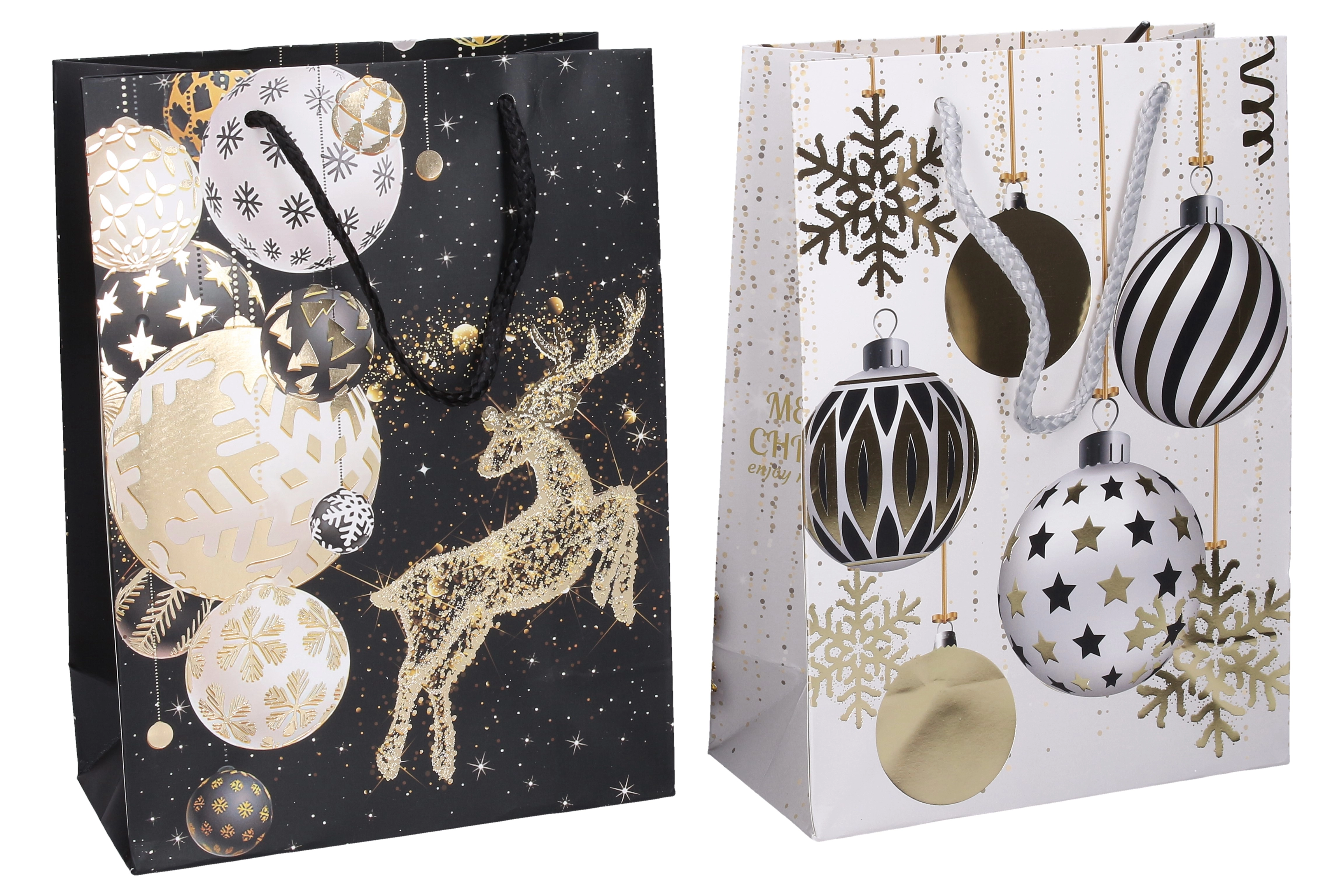 Stilīgs dāvanu maisiņš S izmērā priecēs ikvienu zem eglītes. Kompaktie izmēri 18 × 24 × 8,5 cm un četri svētku motīvi. Pateicoties izturīgajai konstrukcijai, tas ir ideāli piemērots ātrai un elegantai mazāku dāvanu iepakošanai. Ziemassvētku dizains, praktisks izmērs un vienkārša lietošana bez griešanas un līmēšanas.
