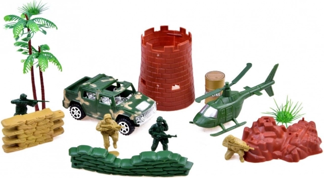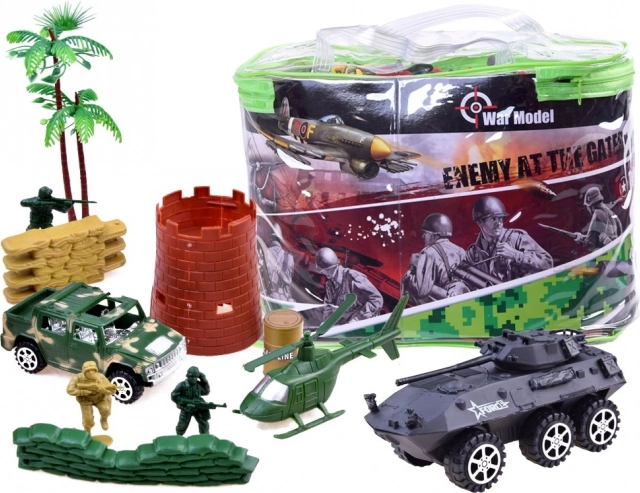 Liels militāro rotaļlietu komplekts episkai un radošai spēlei. Tajā ir plaša tanku, transportlīdzekļu, kareivju un cita aprīkojuma izvēle, kas nodrošina stundām ilgu izklaidi un iztēles spēli.