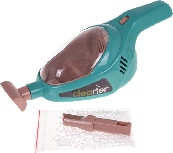 Interaktīvajam rokas putekļsūcējam ar 3× AA (nav iekļautas) ir iekšējais apgaismojums, realistiska sūkšanas skaņa un īsta sīkasto putuplasta lodīšu uzsūkšanas funkcija. Pateicoties maināmiem uzgaļiem (sūcošais un šaurspraugu), bērni var izmēģināt dažādus uzkopšanas scenārijus.