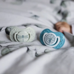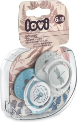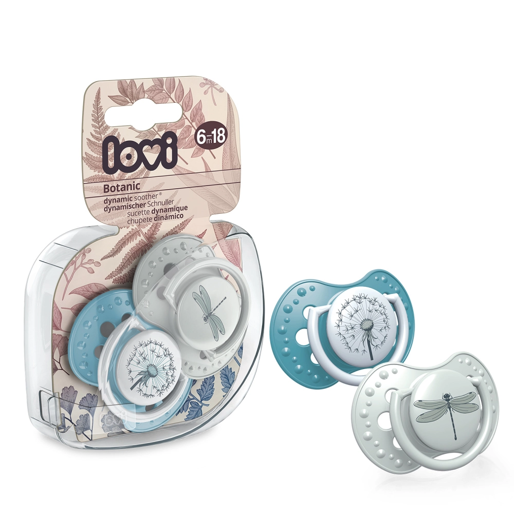 Divu LOVI Botanic knupīšu komplekts bērniem 6–18 mēnešos atbalsta dabiski un veselīgu attīstību aukslējām, zobiem un smaganām. Dinamiska silikona uzgalis atdarina zīšanas ritmu, klīniski pārbaudītā konstrukcija ir bez BPA un saudzīga jutīgai ādai. Viegls vairogs ar ventilācijas atverēm un ergonomisku formu nodrošina brīvu elpošanu caur degunu, vieglu tīrīšanu un ilgu kalpošanas laiku.