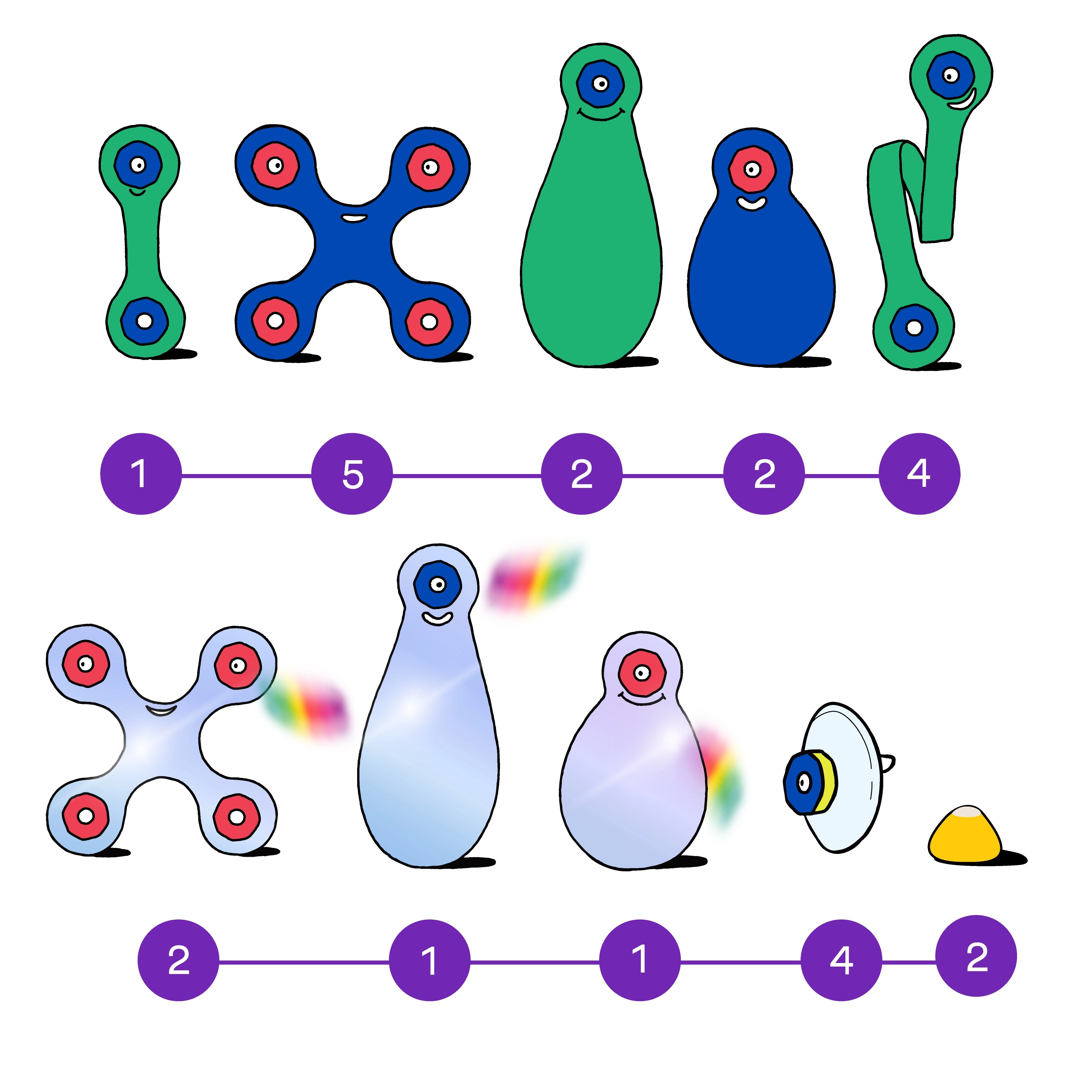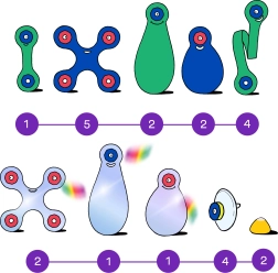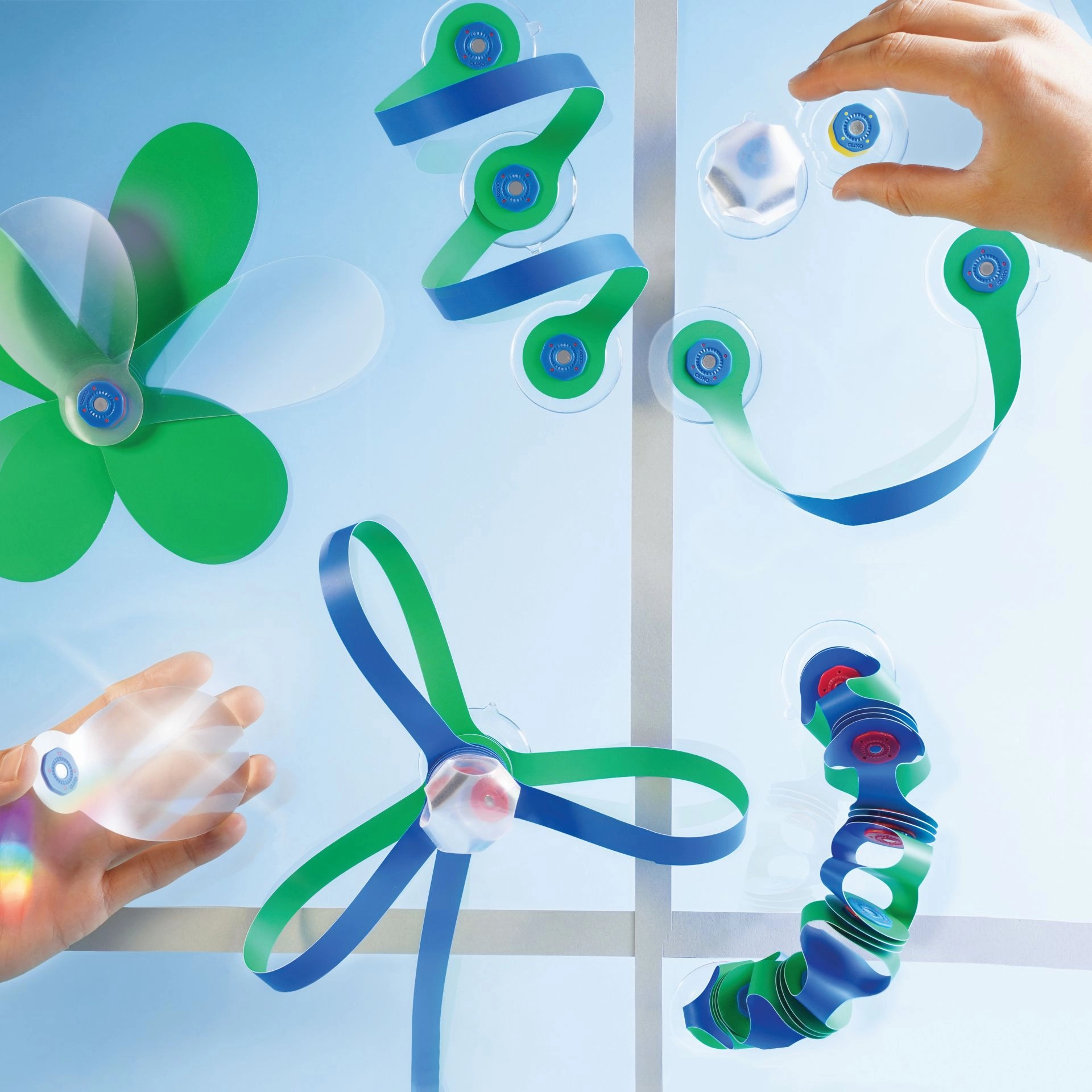 Piesūcekņi ļauj veidot uz logiem un citām gludām virsmām. Prizmatiskie elementi lauž gaismu un rada iespaidīgus krāsu atspulgus, pārvēršot jebkuru logu par rotaļu laukumu.