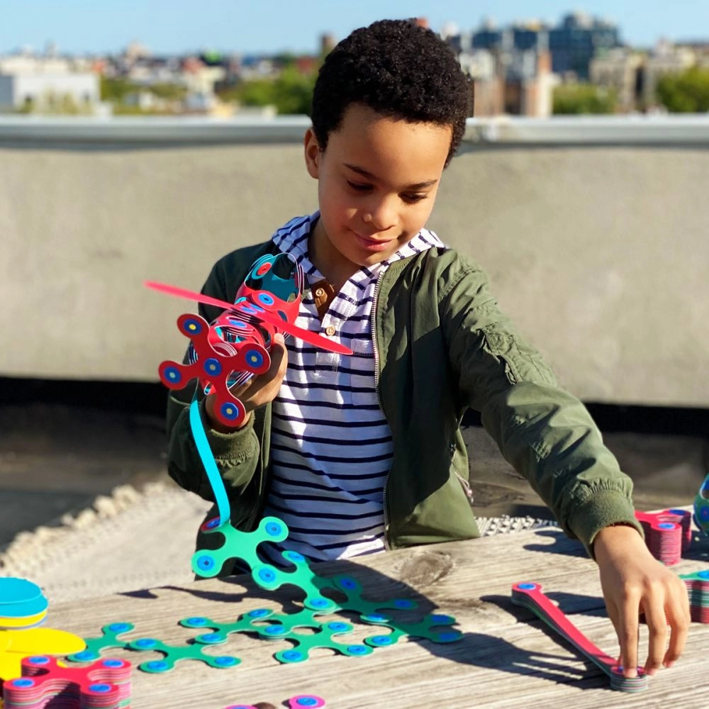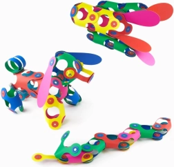 Unikālā patentētā sistēma nodrošina 360° rotāciju un fiksāciju 24 pozīcijās stabilām konstrukcijām. Elementi ir ūdensizturīgi, vieglie un droši (bez BPA un ftalātiem), piemēroti radošai spēlei, koncentrēšanās treniņam un STEAM mācībām mājās vai bērnudārzā. Iedvesmas piemēri ir iekļauti iepakojumā, bet papildu idejas atradīsiet tiešsaistē.