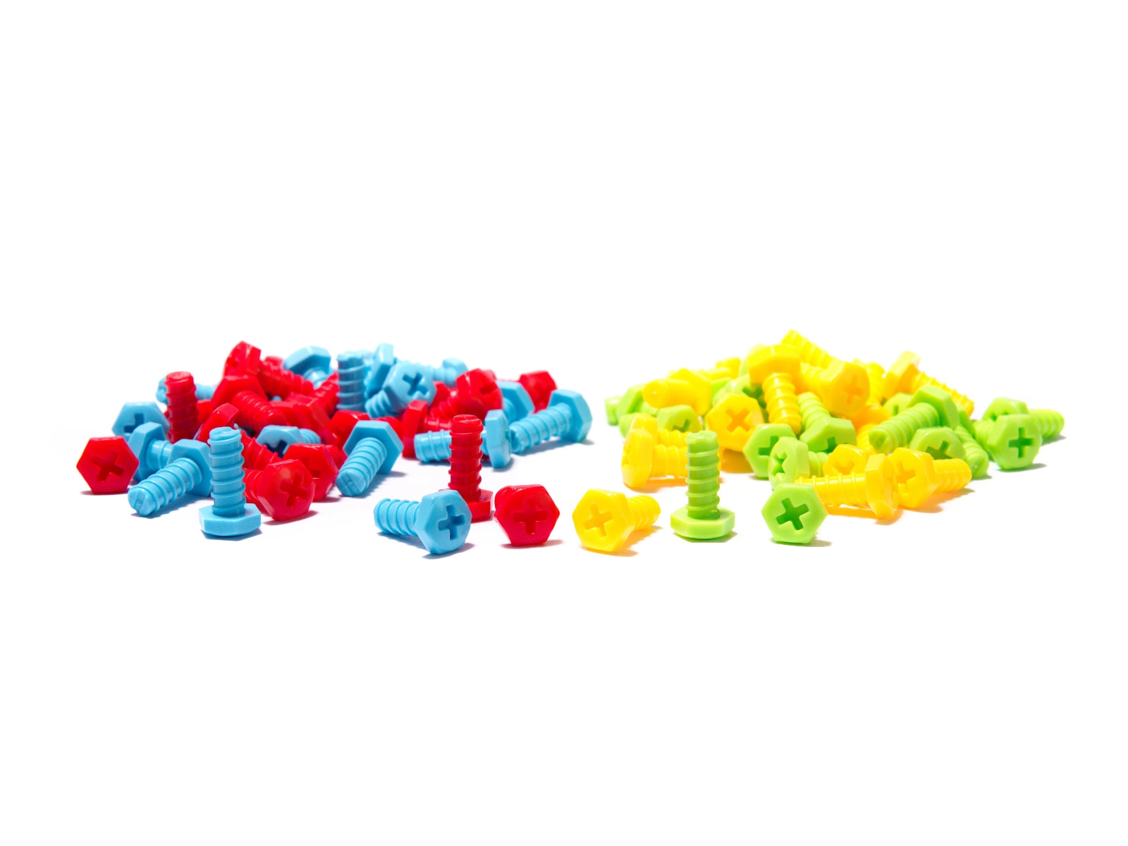 Krāsainas plastmasas skrūves veicina krāsu atpazīšanu un radošo domāšanu.