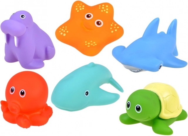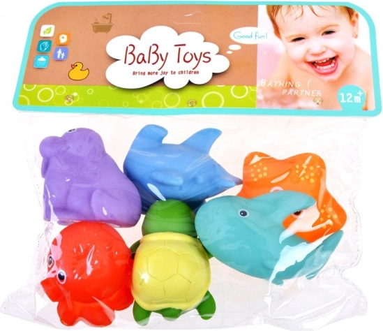Komplekts ar krāsainiem jūras dzīvnieciņiem vannai ir ideāls burvīgu ūdens spēļu radīšanai. Tas sniedz daudz izklaides un attīsta bērnu radošumu.