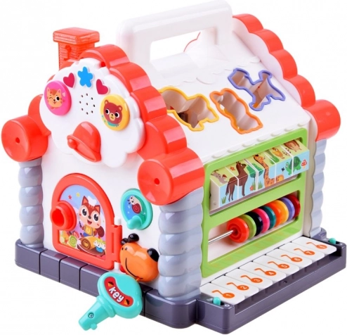 Krāsaina interaktīvā mājiņa bērniem no 18 mēnešiem apvieno formu šķirošanu, reālas dzīvnieku skaņas, jautras melodijas, mini klavierītes, skaitīkli un citas aktivitātes. Attīsta sīko motoriku, loģisko domāšanu, formu un krāsu atpazīšanu un pirmo muzikālo uztveri.