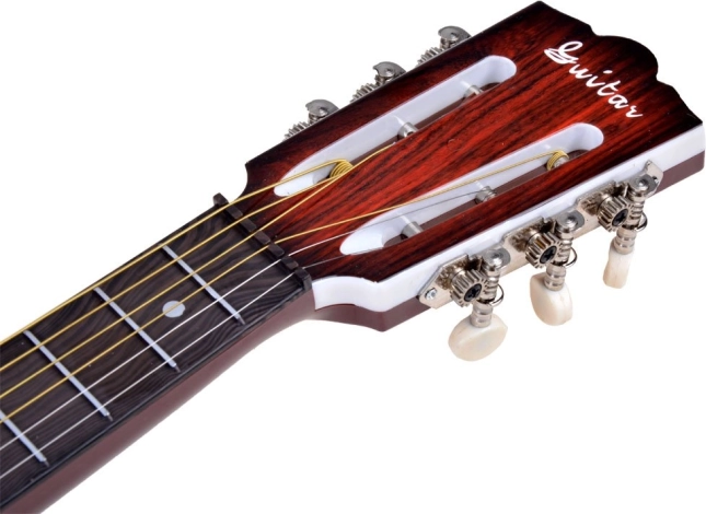 Metāla stīgas nodrošina skaidrāku toni un palīdz bērniem sajust īstu spēles uz ģitāras pieredzi.