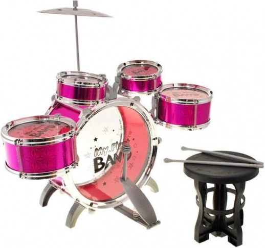 Šis pievilcīgais bērnu bungu komplekts ietver 5 bungas, šķīvi, pedāli lielajai bungai, krēsliņu un kātiņus – visu, kas mazajam bundziniekam vajadzīgs pirmajam “koncertam”. Pateicoties vieglajai konstrukcijai un drošajiem plastmasas materiāliem, komplekts ir piemērots iesācējiem un to ir viegli pārnēsāt un uzglabāt.