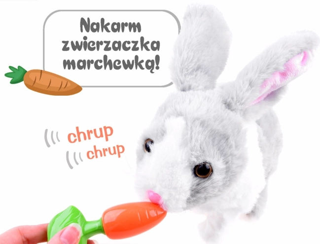 Iepakojumā ir iekļauts burkāns. Pieliekot to pie purna, trusītis izdod reālistiskas graušanas skaņas – lieliski rotaļām ar barošanu.