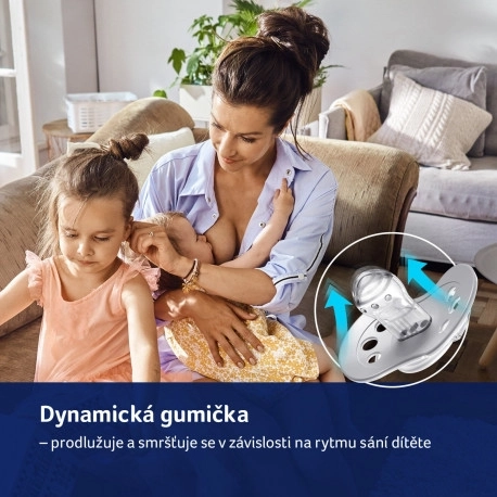 Necaurs zīmējums ar vairākiem slāņiem dabiski saspiežas un izplešas zīšanas laikā, atdarina krūtsgalu un veicina veselīgus mutes dobuma ieradumus.
