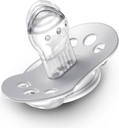 Ergonomiski profilēts vairogs ļauj brīvi elpot caur degunu, un ventilācijas atveres nodrošina gaisa cirkulāciju, kas samazina kairinājuma risku. Kvalitatīvs silikons bez garšas un smaržas ir izturīgs un drošs, protams, bez BPA. Praktiskais rokturis atvieglo pasniegšanu un satveršanu.