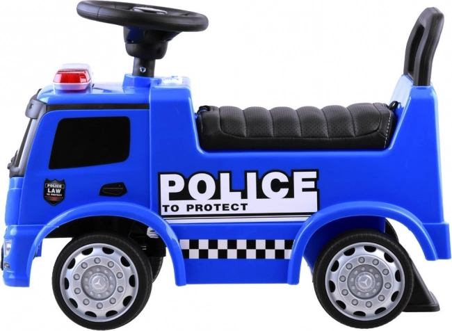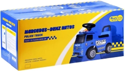 Mercedes Policija braucamrīks ir lieliska izvēle mazajiem bērniem. Tas ir aprīkots ar skaņas taurīti un spīdošu bākuguni, kuras var aktivizēt, nospiežot pogas. Ērts sēdeklis ar atzveltni nodrošina drošu un komfortablu braucienu, un, pateicoties īpašai bloķēšanai, transportlīdzeklis neapgāžas atpakaļ.