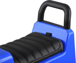 Ērts sēdeklis ar atzveltni nodrošina drošu un komfortablu braukšanu, bet īpašs bloķētājs pasargā no apgāšanās atpakaļ.