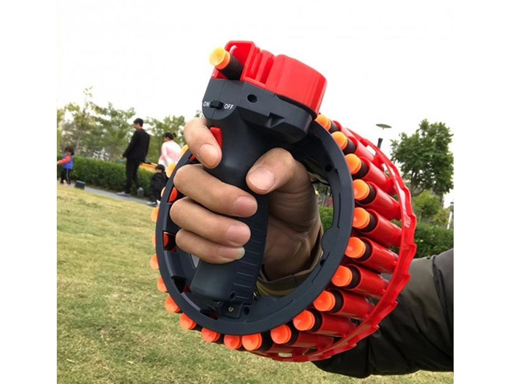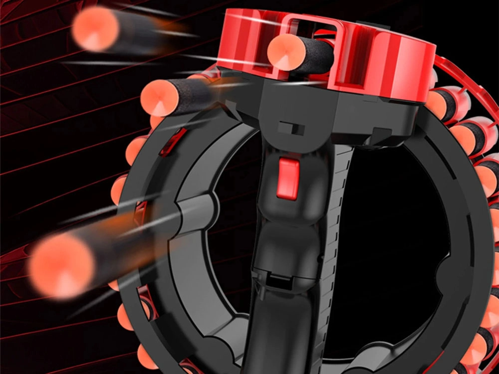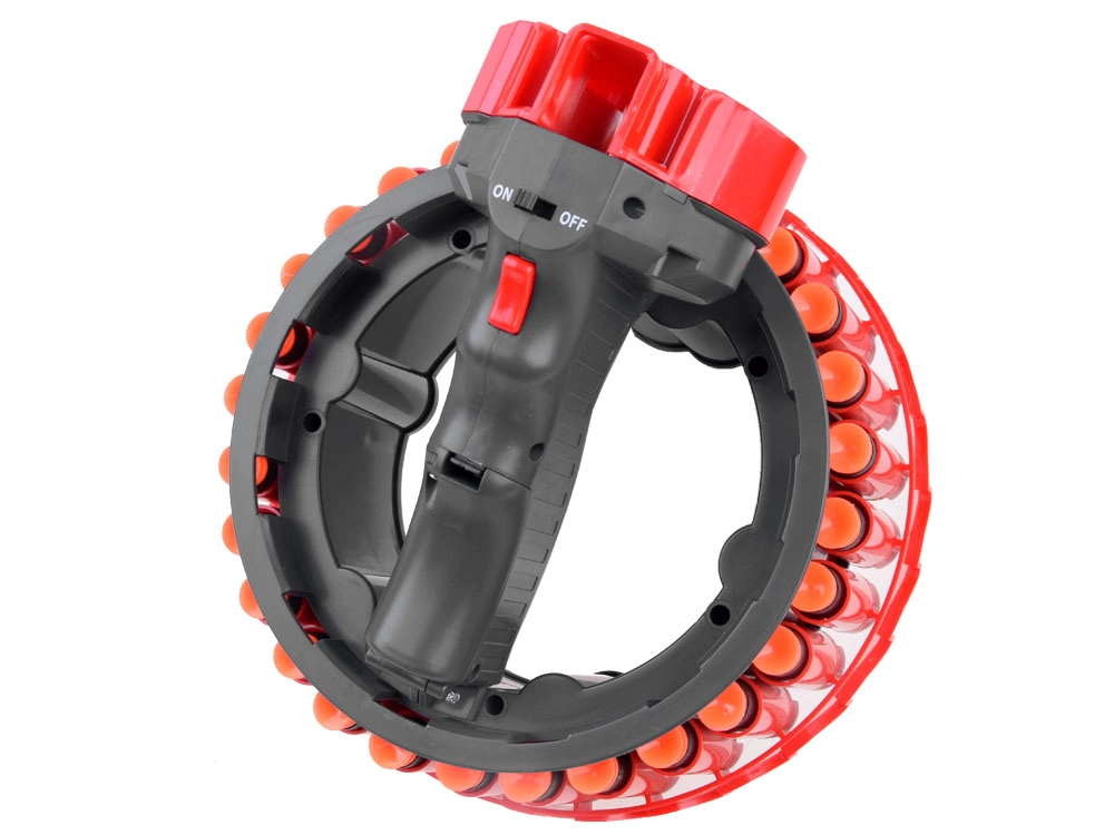 Rotējošā apaļā aptvere ietilpina līdz 28 bultām, tāpēc mazāk laika tērēsiet pārlādēšanai un vairāk – spēlei. Mīkstās EVA bultas ar piesūcekņiem droši pieķeras pie logiem, spoguļiem vai flīzēm. Pateicoties USB uzlādei, enerģiju varat papildināt gandrīz jebkur.
