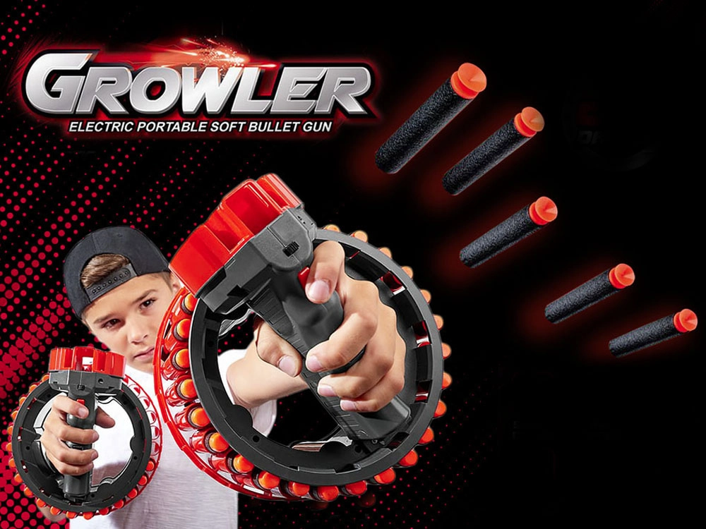 Divu elektrisko blasteru GROWLER komplekts ir ideāli piemērots brāļiem, māsām un draugiem. Ergonomiska roktura forma ērti pieguļ plaukstai un ļauj ērti lietot ar vienu roku. Blasteri šauj ātri un precīzi gan atsevišķiem šāvieniem, gan automātiskās sērijās. Uzlādējamais akumulators nodrošina ērtības bez nepieciešamības pirkt baterijas.