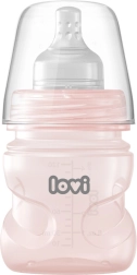 Ergonomiski profilētā pudeles forma atvieglo turēšanu un barošanu drošā pozīcijā. Pudele ir bez BPA, piemērota no dzimšanas un saderīga ar LOVI piena sūknīšiem. Pateicoties platam kakliņam, to ir viegli pildīt un tīrīt. Iepakojumā ir arī elastīgs blīvēšanas disks drošai piena uzglabāšanai, vāciņš un mērtrauks ar īpašu uzlējēja malu precīzai dozēšanai.
