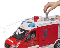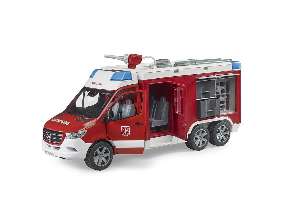 Pilnībā funkcionējoša ūdens sistēma ar tvertni, sūkni un uz tinuma šļūteni ļauj “nodzēst” jebkuru ugunsgrēku acumirklī. Gaismas un skaņas modulis atbalsta dinamiskus sižetus, savukārt mīkstie riepu protektori nodrošina drošu braukšanu. Modelis ir saderīgs ar BWORLD aprīkojumu un to var paplašināt ar lāpstu (Bruder 2581/2582) vai kombinēt ar bworld ugunsdzēsēju staciju (Bruder 62702).