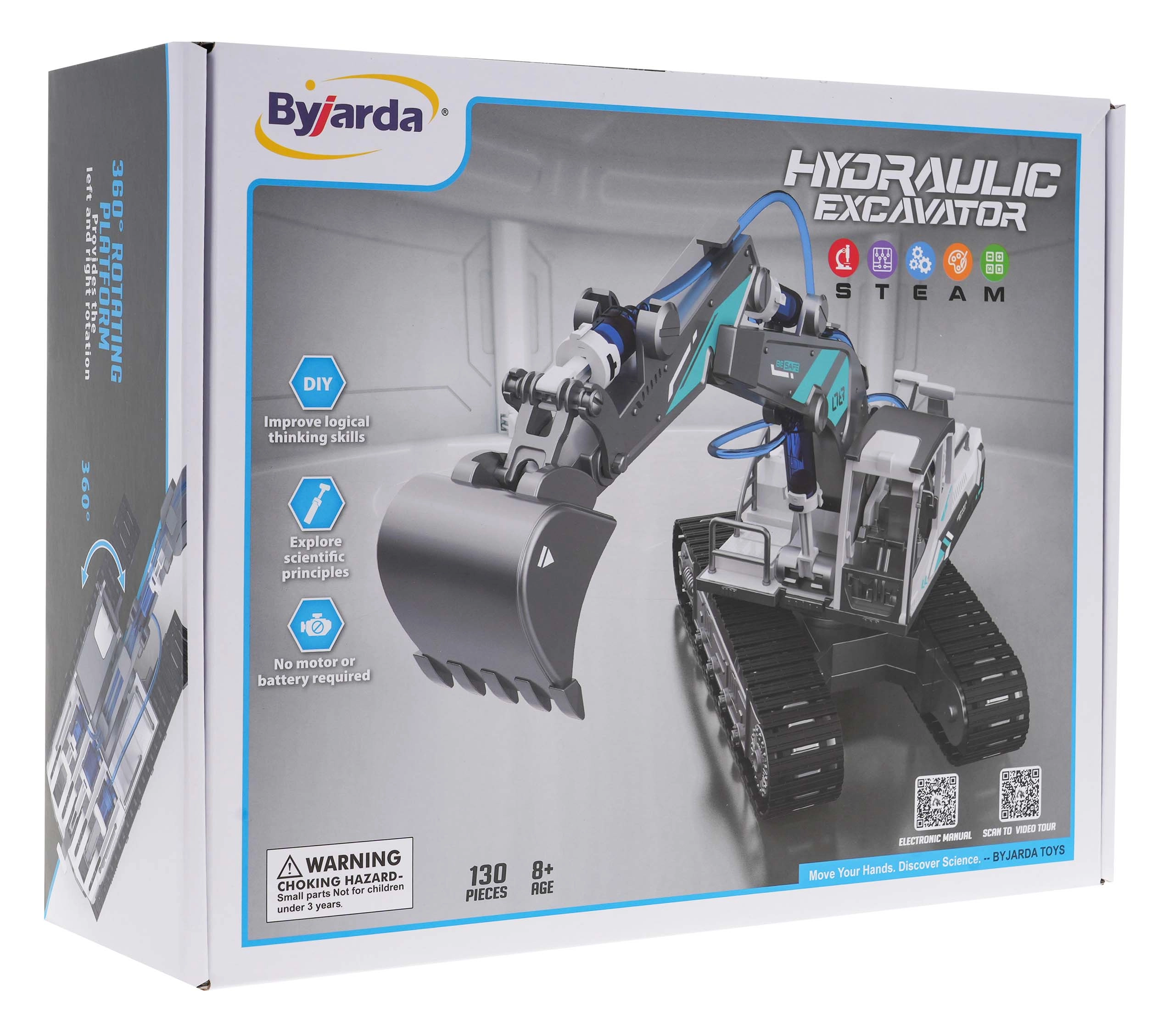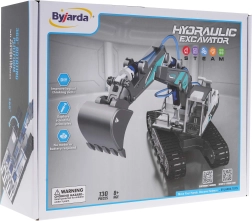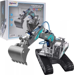 Hidrauliskais ekskavators salikšanai ir izglītojošs konstruktors, kas bērniem saprotami parāda, kā ūdens hidrauliskais spiediens pārvērš spēku kustībā. Pēc salikšanas nav vajadzīgas baterijas – vadības sviras un ūdens iedarbina roku, strēli un kausu gluži kā īstā darba tehnikā.