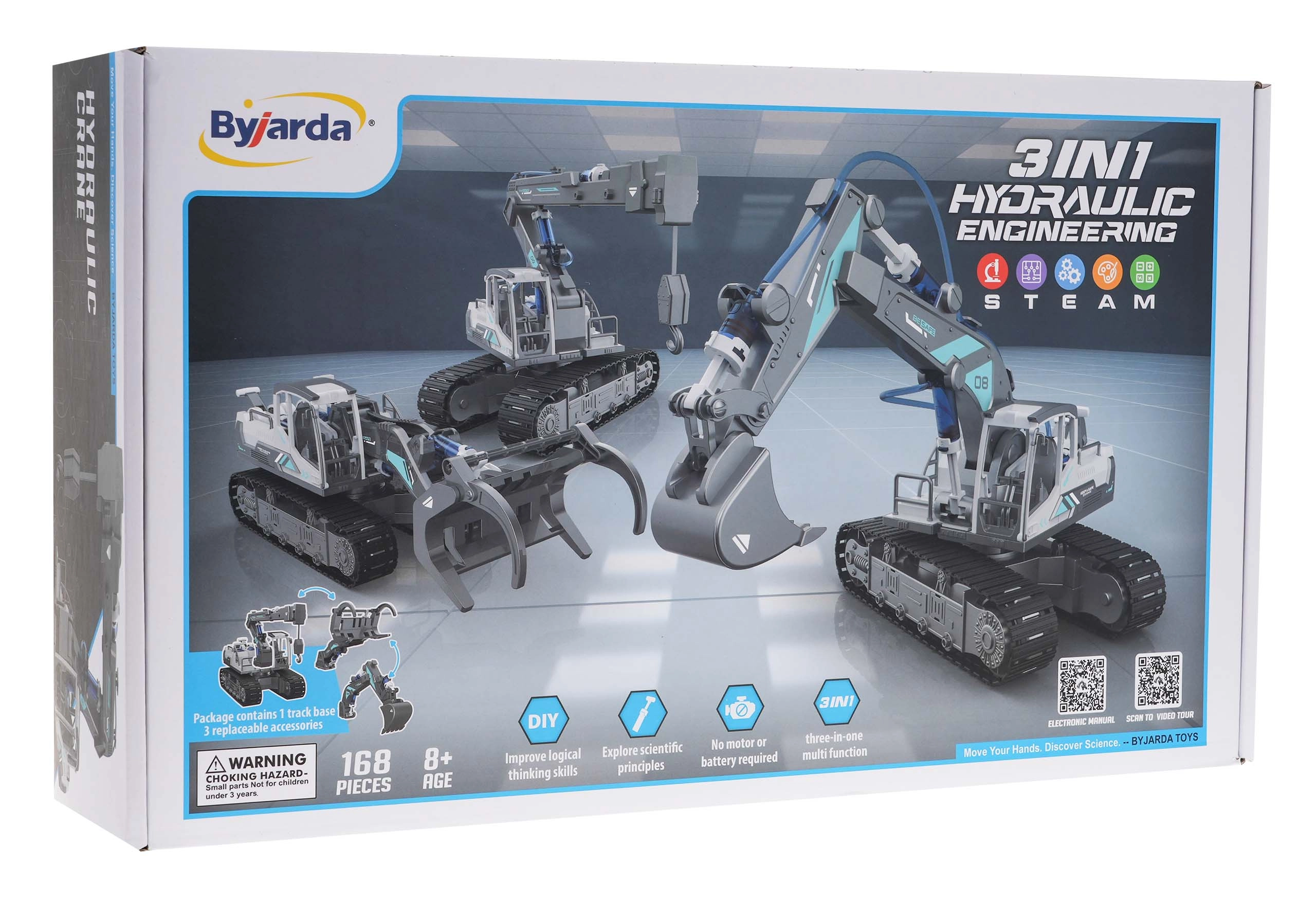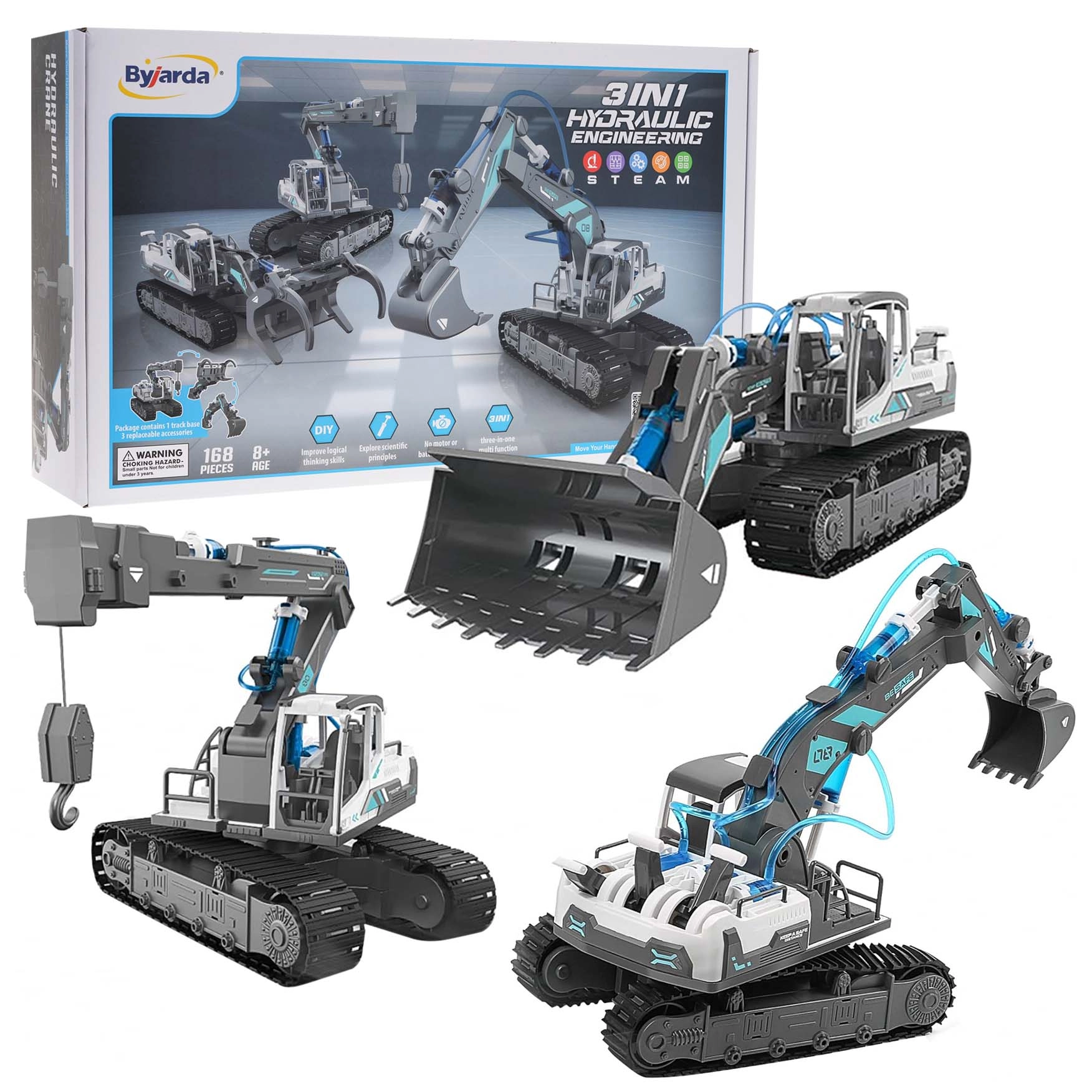 Šis gudrais konstruktors apvieno spēli un mācīšanos: bērni paši saliek trīs dažādus celtniecības mehānismus un praksē iepazīst hidraulikas principus. Vadība ar ūdens virzuļiem nodrošina reālistiskas kustības – satveršanu, celšanu, nolaišanu un plūdenu pagriešanu.