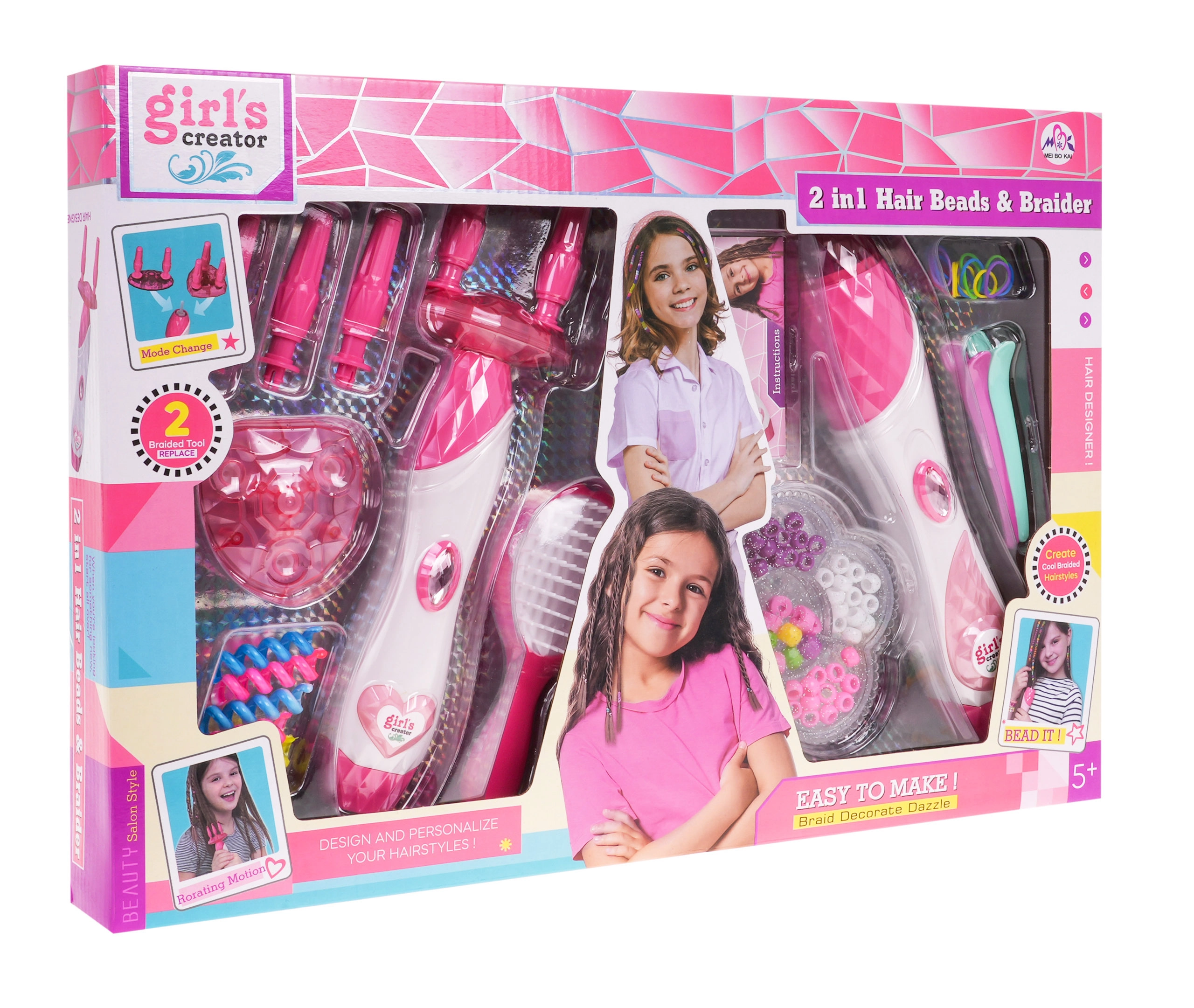 Šis radošais komplekts jaunajām frizierēm piedāvā visu nepieciešamo ātrai bīžu pīšanai un oriģinālai matu rotāšanai. Bīžu mašīnīti ir viegli lietot – pietiek ievietot šķipsnas un pabīdīt vadības slēdzi. Krellīšu aplikators ļauj dažu brīžu laikā uzlikt krāsainas krellītes tieši matos. Pateicoties bagātīgajam aprīkojumam, var veidot desmitiem stilu jebkuram notikumam.