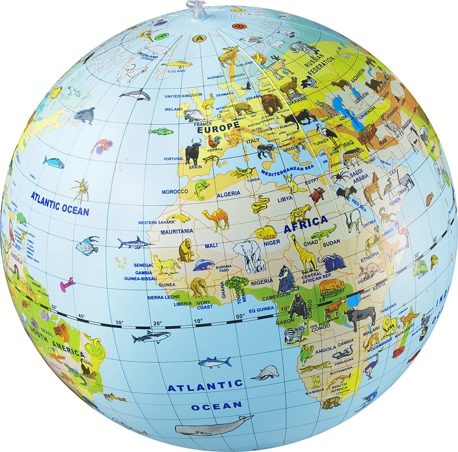 Šis košais uzpūšamais globuss ar dzīvniekiem palīdz bērniem saprast pasauli ap mums. Metot, ķerot un pētot bumbas virsmu, viņi iepazīst kontinentus, okeānus un mācās piesaistīt dzīvniekus to dzīvesvietām. Lielisks palīglīdzeklis pirmsskolēniem un skolēniem, kas attīsta izziņas prasmes un veicina dabisku zinātkāri.