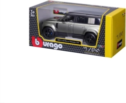 Detalizēts metāla auto Bburago mērogā 1:24 uzticami atveido leģendāro Land Rover Defender 110 elegantā zaļā krāsā. Pateicoties metāla virsbūvei, reālistiskām detaļām un atveramām durvīm iepriecinās gan kolekcionārus, gan bērnus no 3 gadu vecuma.