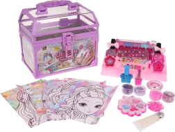 Violetā krāsā esoša lāde, kas pilna ar krāsainiem kosmētikas līdzekļiem. Lieliski piemērota rotaļīgai modes izklaidei un radošumam.