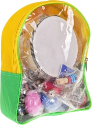 - Mugursoma, ksilofons, tamburīns, 2× vālīte bungām/ksilofonam, trijstūris ar sitamo kociņu, 2× marakasas, 2× rokas zvārguļi, 2× zvārguļi uz siksniņas, 4× ola–šakers, cilindriska grabulīte, 2× svilpe, vienkāršas melodijas instrukcija