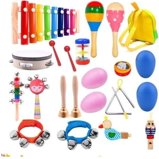 Komplekts paredzēts drošai spēlēšanai un svarīgu prasmju attīstībai: ritma izjūtai, acu–roku koordinācijai un sociālajai mijiedarbībai kopīgā muzicēšanā. Pateicoties plašajam instrumentu klāstam, bērni var izmēģināt dažādas skaņas, toņu krāsas un dinamiku, kas veicina radošumu un muzikālo dzirdi.