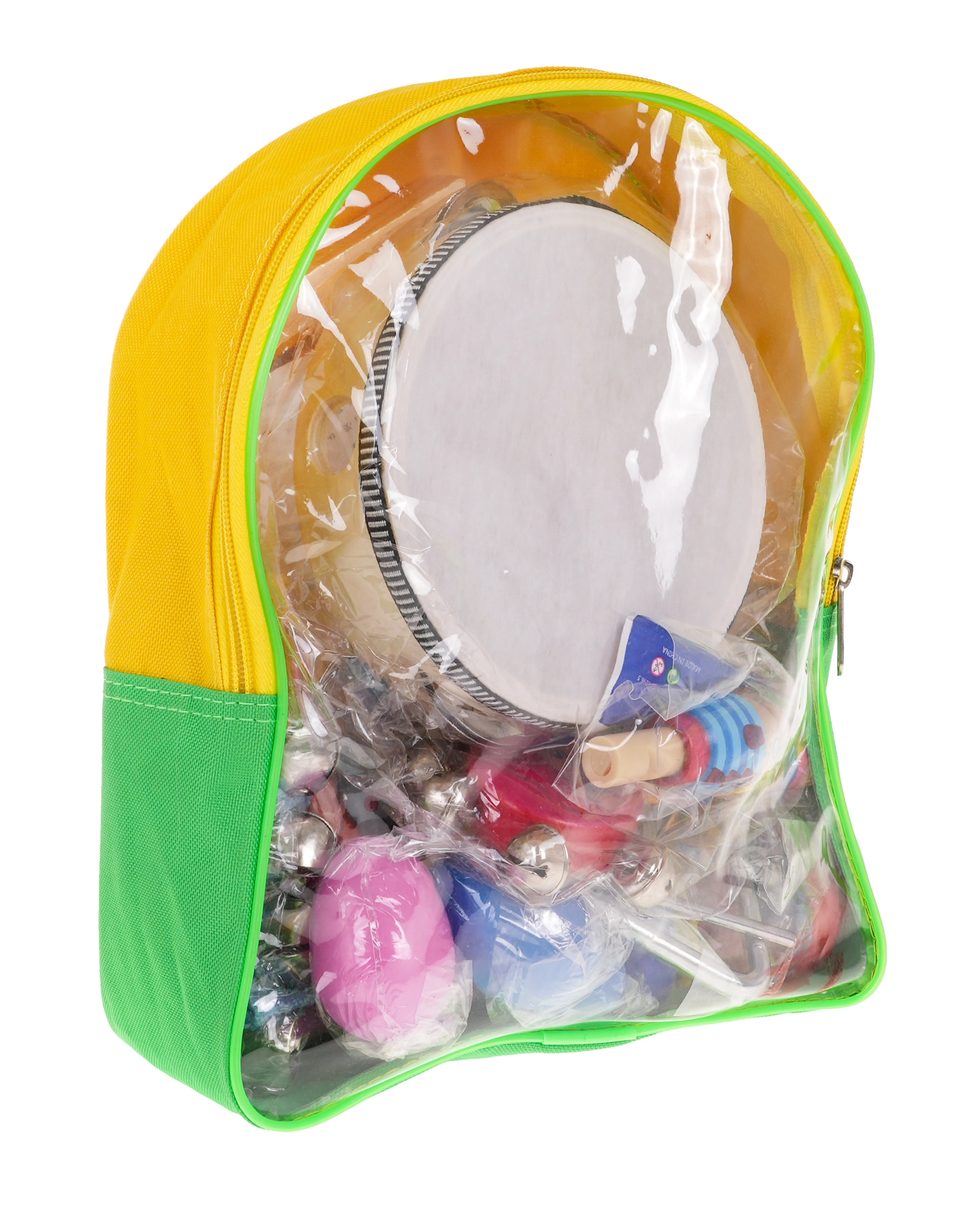 Šis daudzveidīgais mūzikas komplekts bērniem sniedz prieku atklāt toņus un ritmus. Koka un metāla elementi ir izturīgi un krāsaini, lai veicinātu uzmanību un koncentrēšanos. Viss ērti glabājas caurspīdīgā mugursomā, kuru ir ērti nēsāt un viegli uzturēt kārtībā.