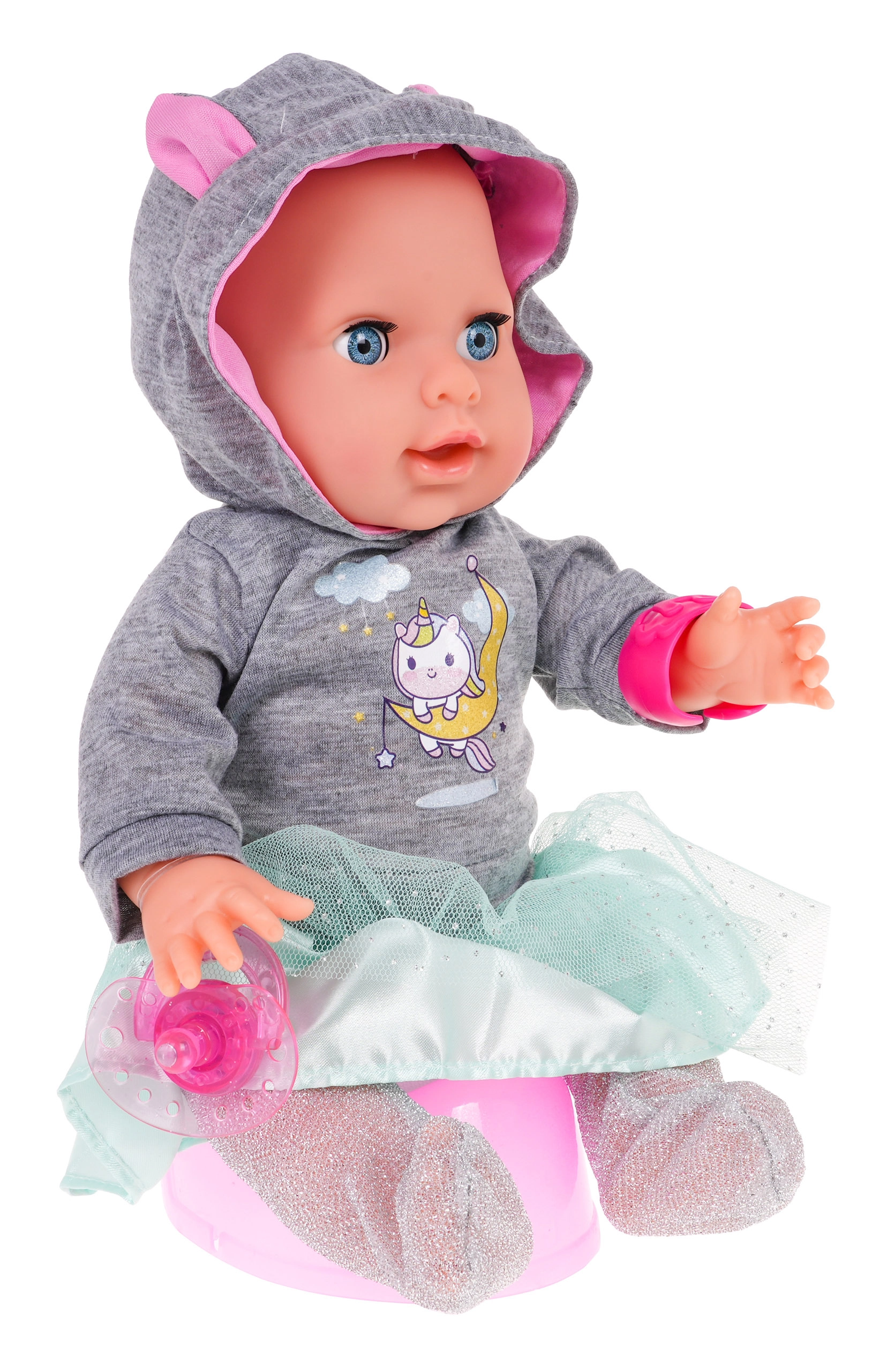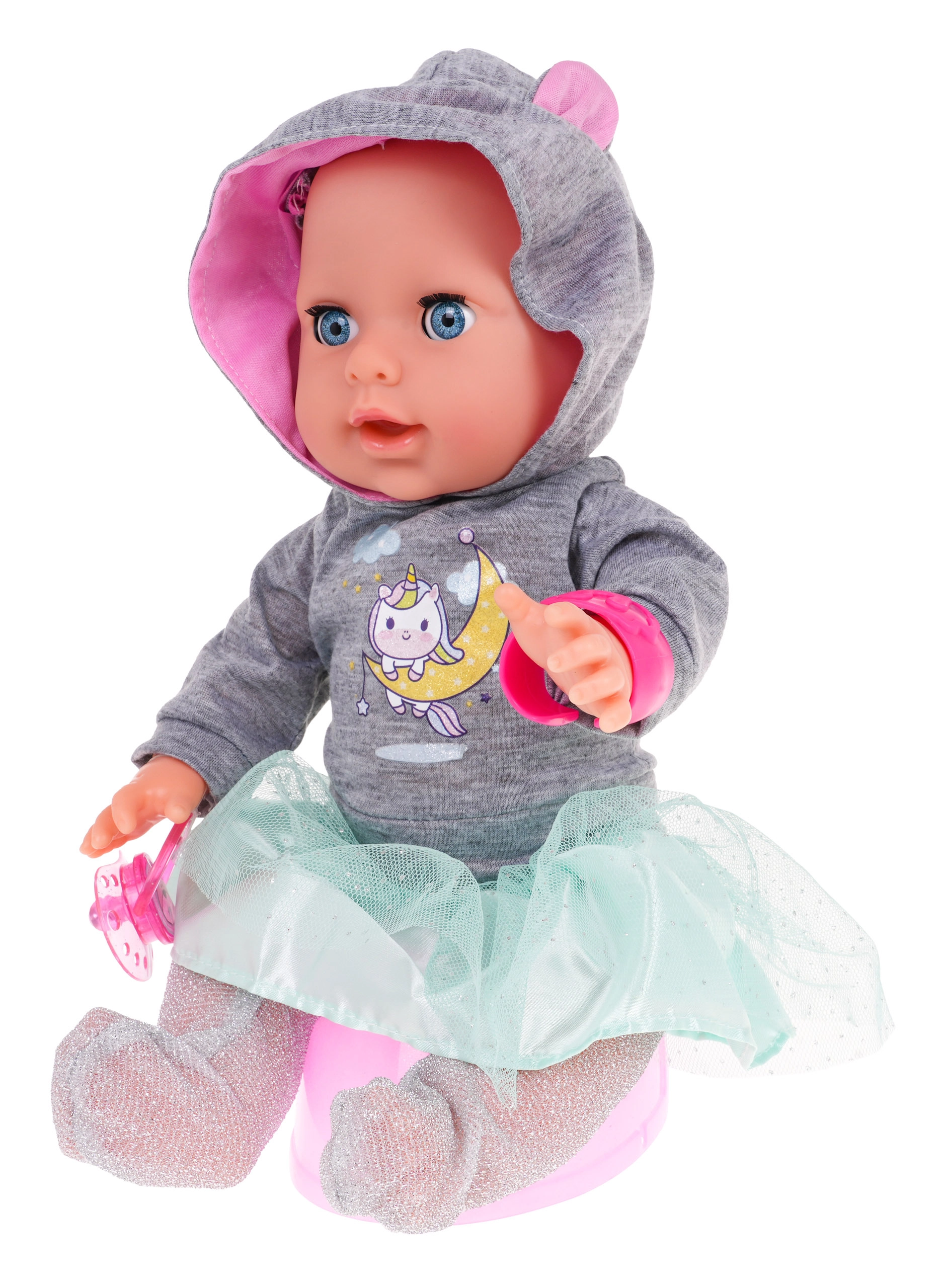 Pēc padzeršanās no pudelītes lelle var nokārtoties podiņā. Magnētiskais knupītis viņu ātri nomierina, kad ir “slima” vai īgna.