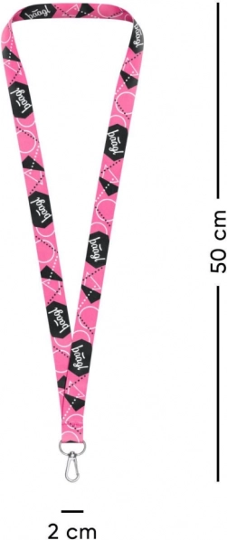 Uz melnajām siksniņas daļām izceļas pamanāms BAAGL logotipa un sirsniņu motīva apdruka, kas piešķir unikālu izskatu. Lentiņš ir ideāls atslēgām, ID kartēm, zibatmiņām vai mazākiem aksesuāriem, un 45 cm garums ļauj to ērti nēsāt ap kaklu vai piestiprināt pie somas.